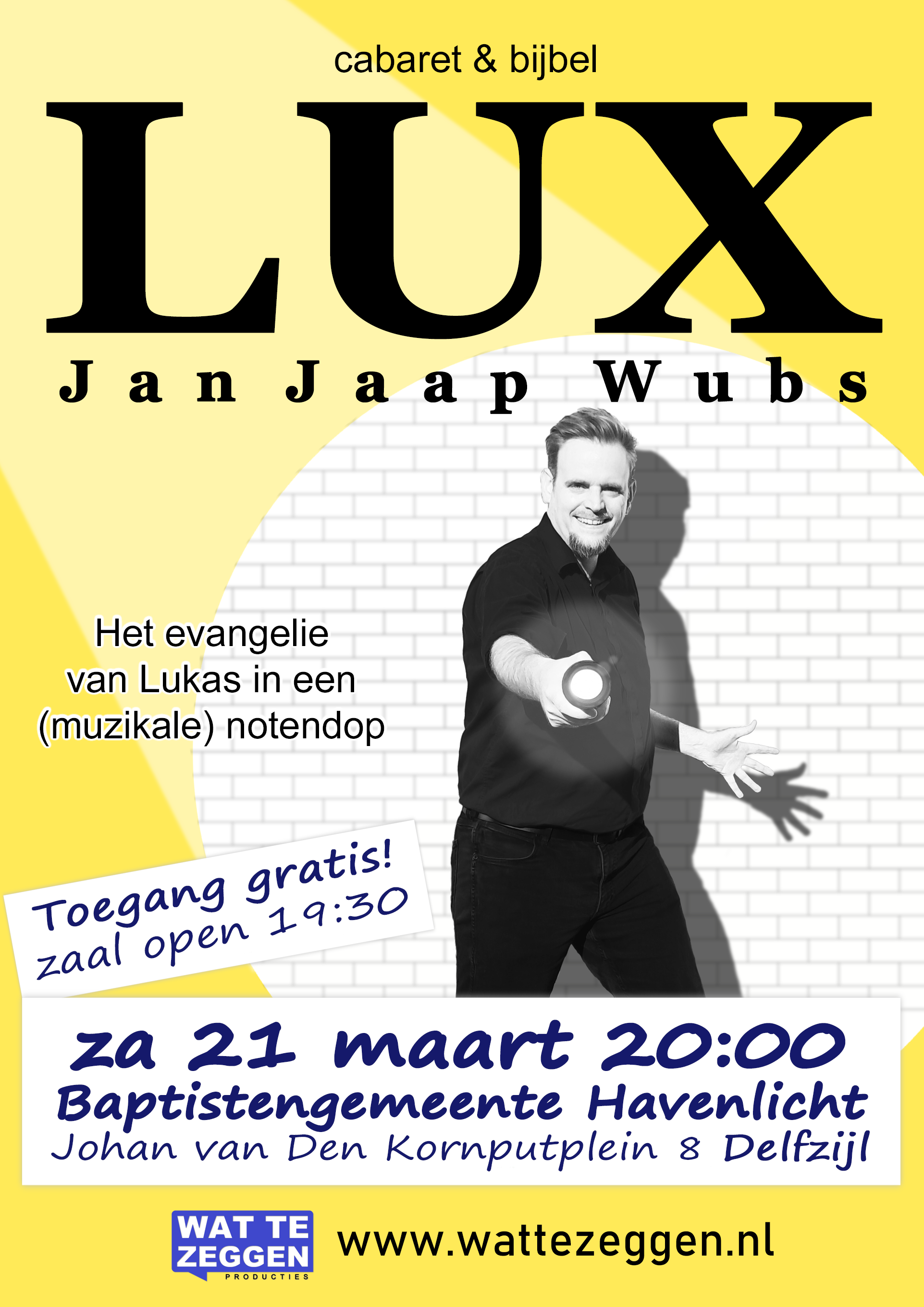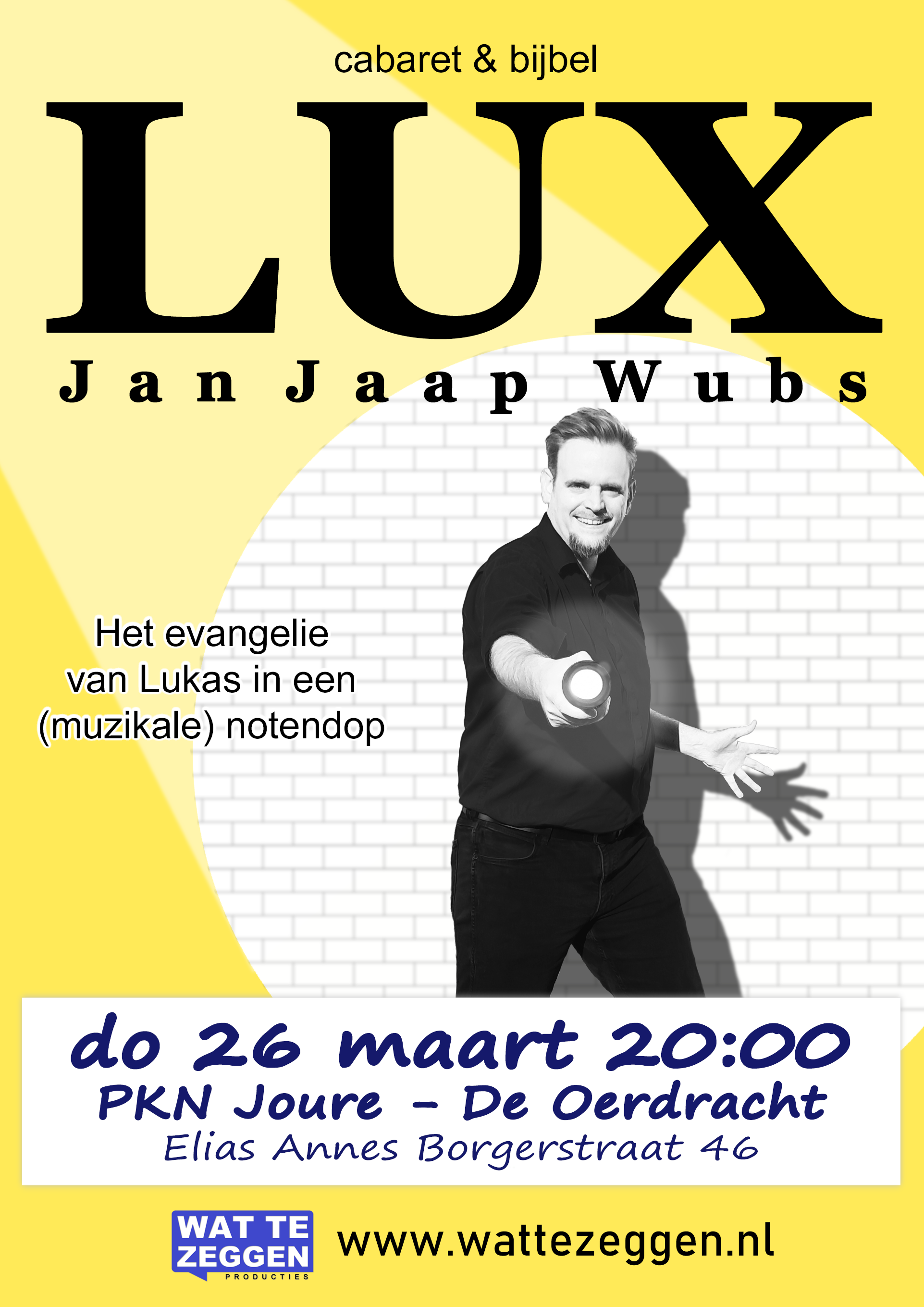 Binnenkort weer twee voorstellingen met LUX. Weet je welkom, beide gelegenheden zijn gratis te bezoeken.Wil je bij je kerk of vereniging of een andere gelegenheid ook een voorstelling van Jan Jaap organiseren? Leuk! Neem contact op via info@wattezeggen.nl